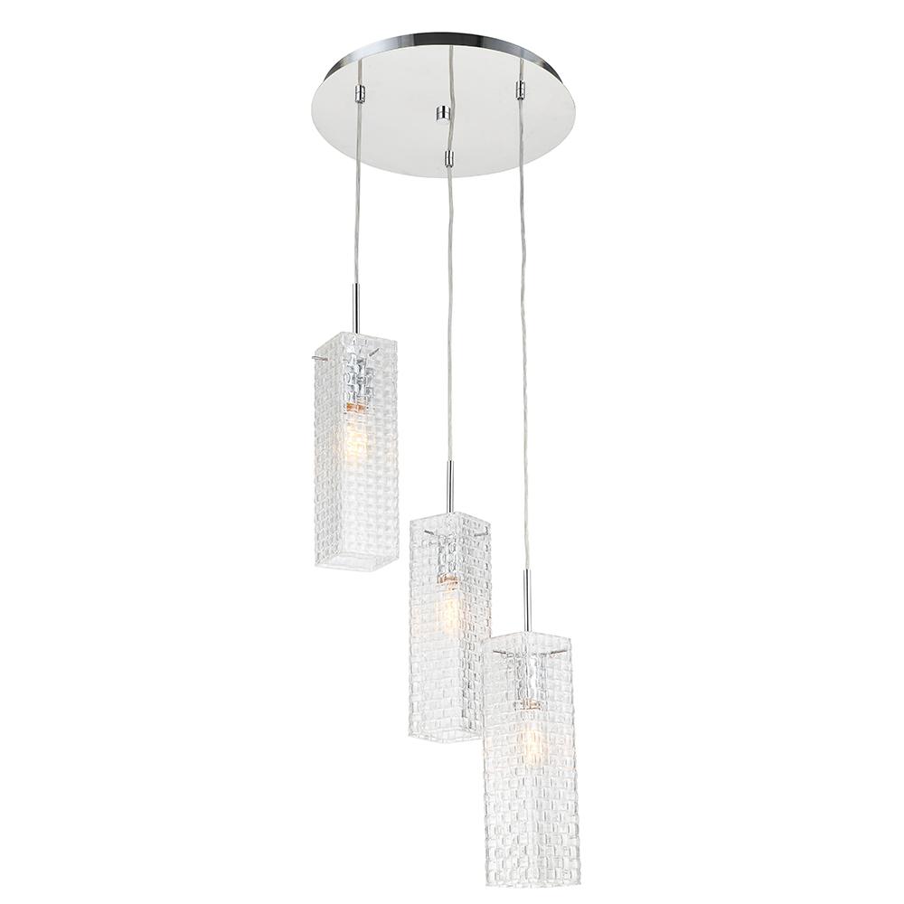 3 Light Clear Weave Square Pendant with Clear Cord & Polished Chrome Finish