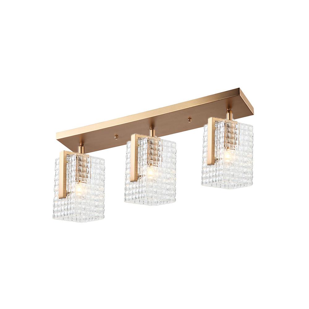 Semi-Flush, 3 Light Square Clear Weave Glass in Aged Brass Finish