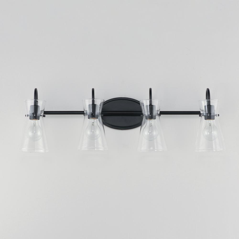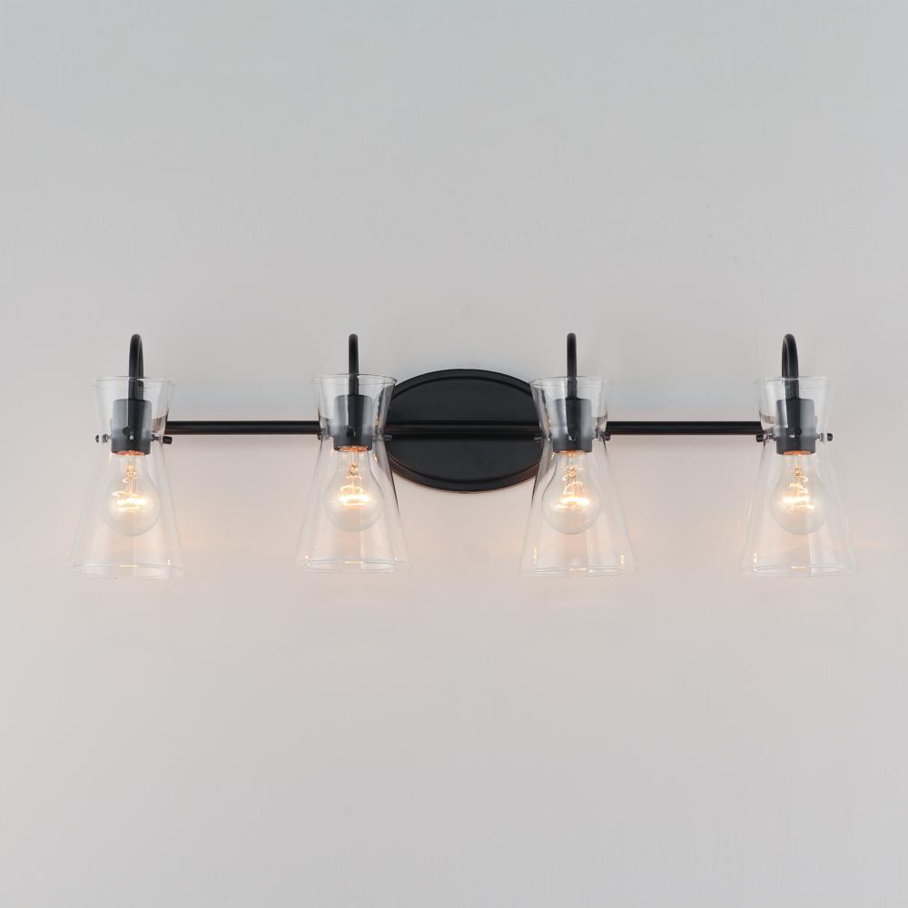 Suspended by three pin connections, the sharp silhouette of Ava's angular glass provides a designer look to enhance your bathroom design. Using Clear glass and a variety of complementary metal finishes the sconces are available in Black, Polished Chrom
