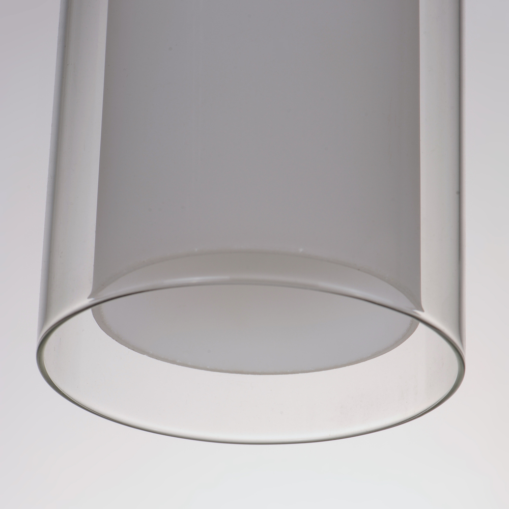 A double glass shade advances the double shade design with the integration of sleek and modern integration of design. Satin White inner glass shades are surrounded by a transparent Clear outer glass, available in your choice of Satin Nickel or Black finish