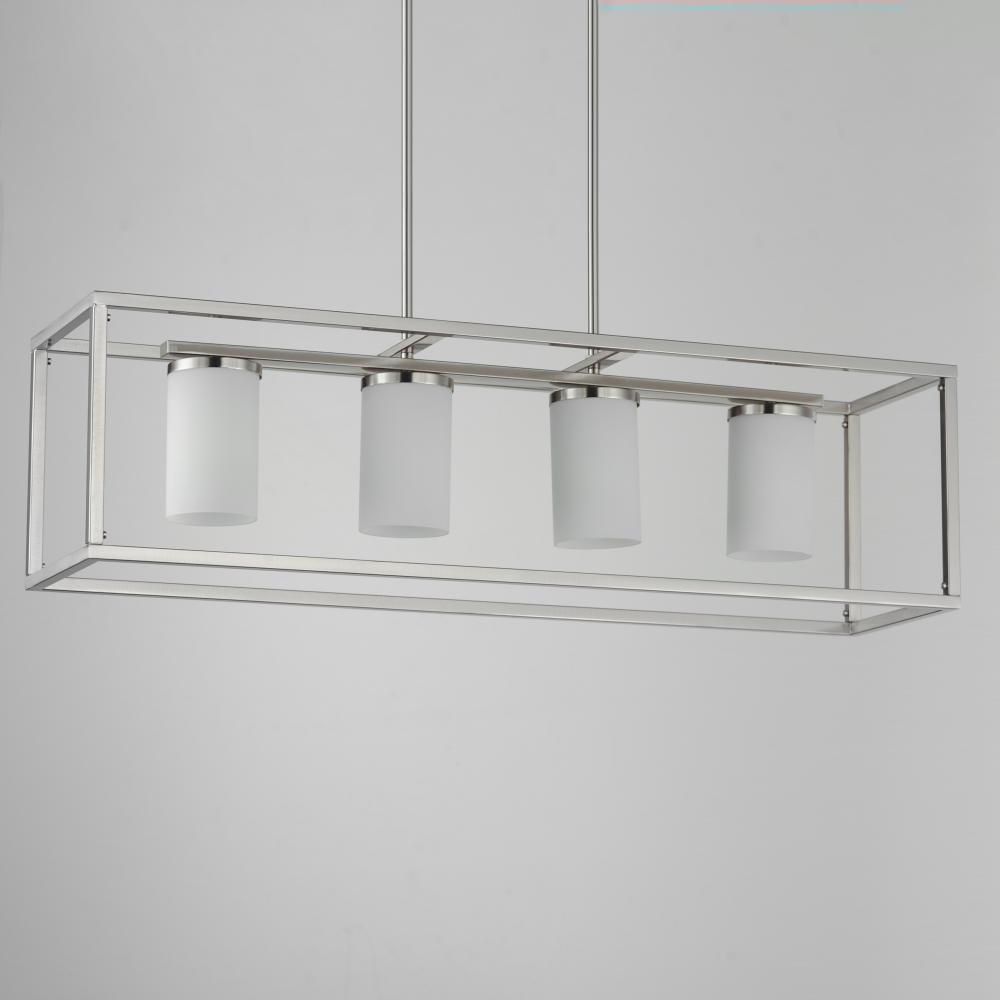 A clean design for the most common applications, the Lateral collection offers chandeliers in both traditional configurations and within a rectangular frame for above dining spaces. Finished in complementary colors including Satin Brass, Satin Nickel or Ma