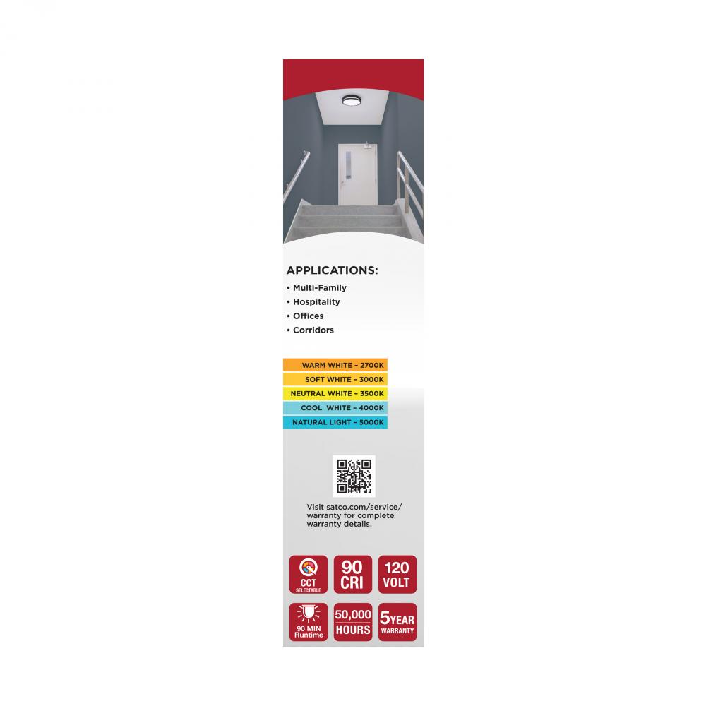 The SATCO NUVO 13-Inch Glamour LED flush mount fixture features a built-in emergency battery backup that provides up to 90 minutes of illumination during power outages-offering critical reliability with an elegant design. An integrated emergency test butto