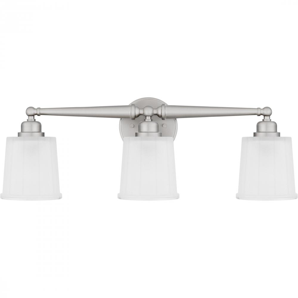 Clear sandblasted glass shades cast a soft glow in the Cecilia bath light collection. The classic silhouette is available in multiple size options and your choice of bronze gold or brushed nickel. Whichever option you choose for your vanity, Cecilia is des