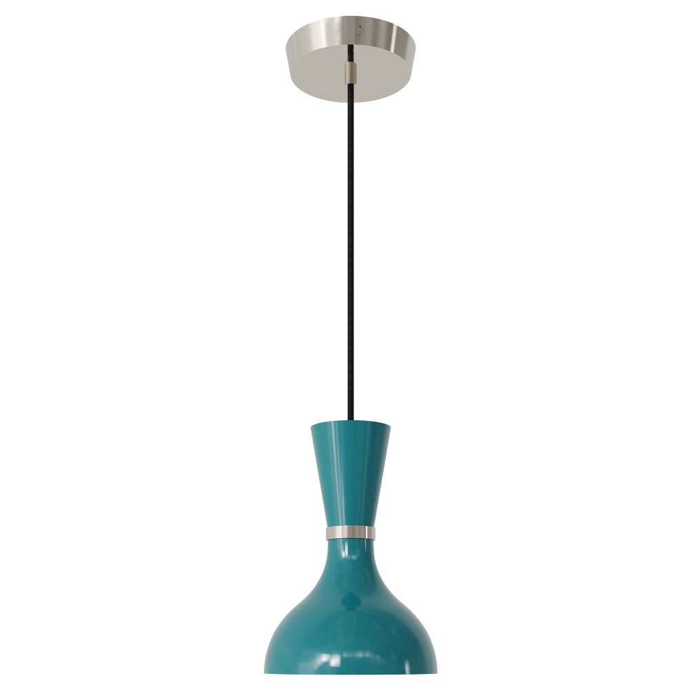 Polished Nickel Pendant w/ Peacock Painted Shade
