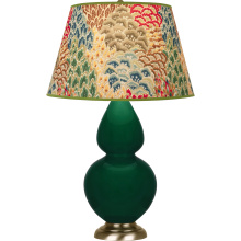 Jungle Glazed Ceramic with Antique Natural Brass Finished Accents Double Gourd Table Lamp with Pearl Dupioni Fabric Shade - Our Double Gourd collection features a simple but gracefully curving silhouette. Available in a wide array of vibrant colors and several different base finishes.