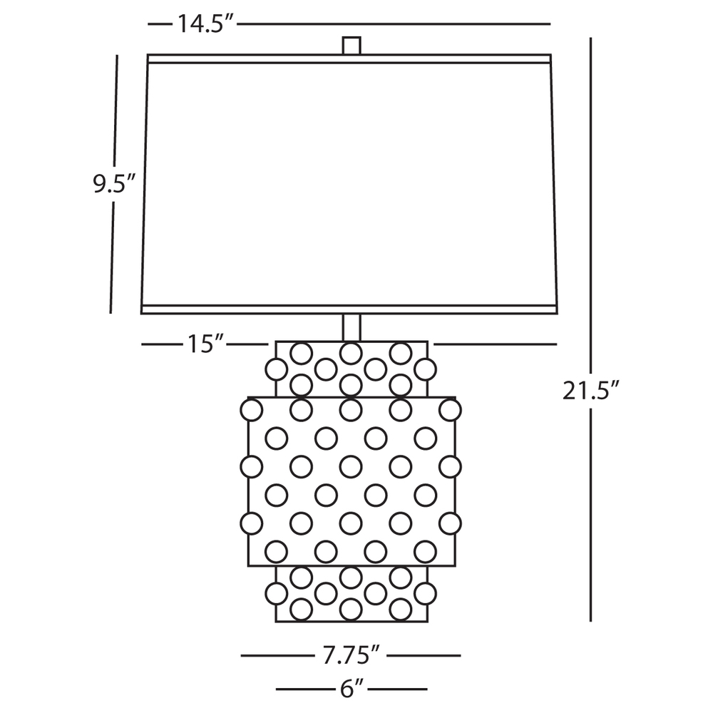 Nickel Metallic Glaze Dolly Accent Lamp with Black Opaque Parchment Shade with Silver Foil Lining - Our Dolly table lamps are a great choice for adding visual appeal with a raised circle pattern and gunmetal glaze adorning the ceramic body. You cant go wrong lighting your space with this modern twist on a classic shape.
