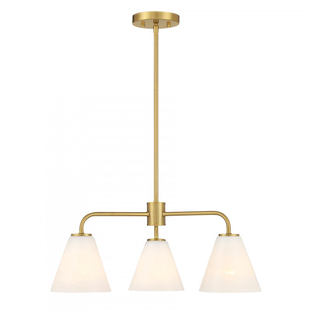 This Savoy House Blair 3-light chandelier is oh so versatile! It can be installed with the lights facing up or down, making it perfect for meeting every lighting need. Slender, sleek arms are finished in Warm Brass and topped with shades of spectacularly swirling strie glass. Blair is 24" in width and has an adjustable height ranging from 9" to 63". Uses three standard size bulbs of up to 60 watts per bulb. Bulbs not included. Comes with four 12" downrods and one 6" downrod.