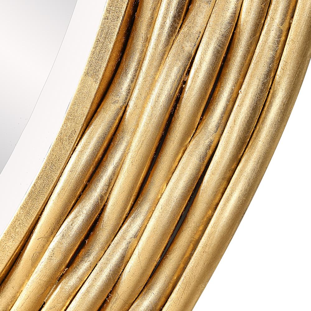 Our Celeste Round Mirror Is Crafted With Layered Iron Rods Meticulously Hand-forged To Create A Graceful, Alternating Wavy Texture. This Unique Design Exudes A Soft Yet Industrial Elegance, Finished In A Lightly Antiqued Gold Leaf. Mirror Has A Generous 1 1/4" Bevel.