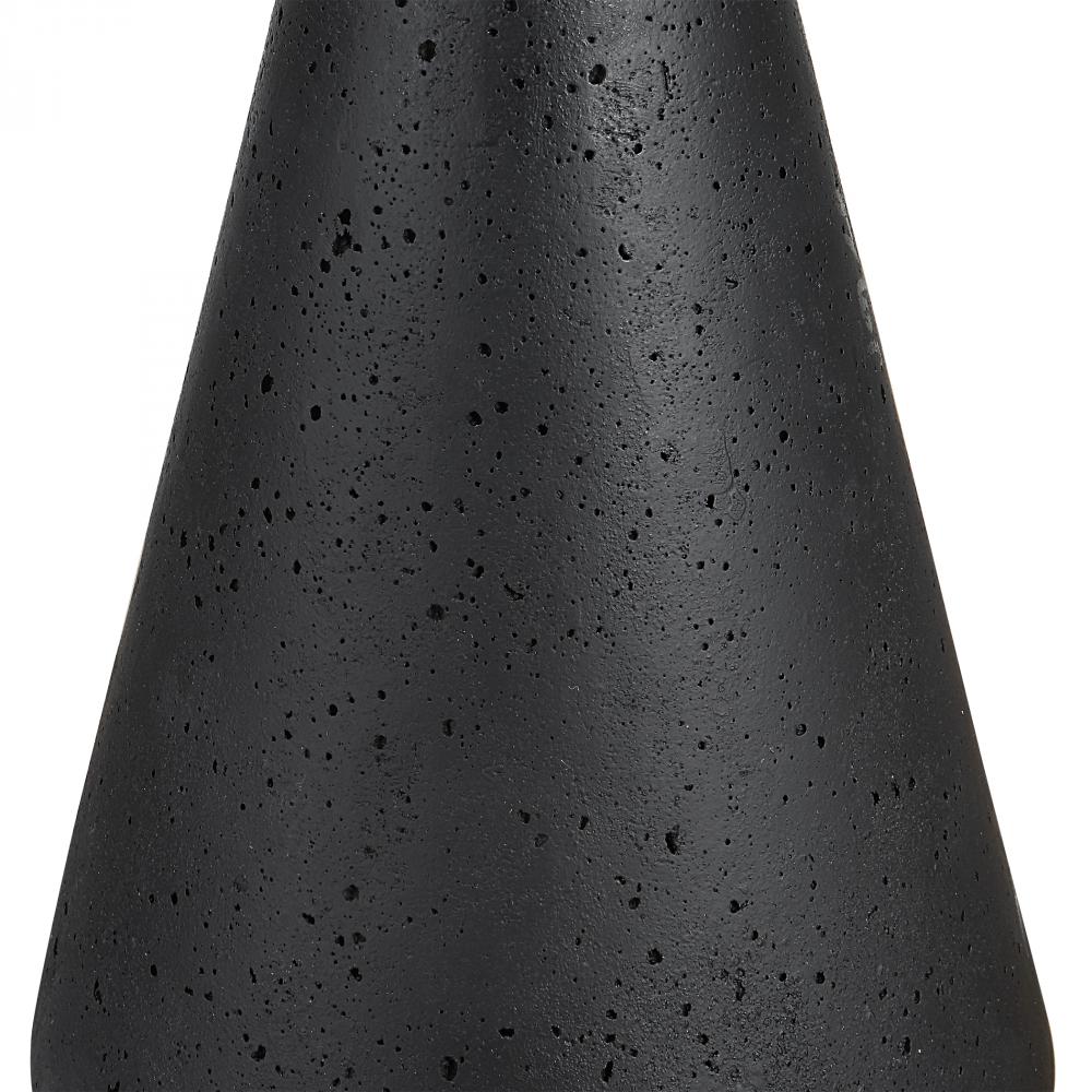 This Accent Table Makes A Dramatic Statement with Its Sleek, All Black Design. The Slim Steel Rod is Accented By A Black Man-made Stone Top and Foot with A Noticeably Porous Texture.