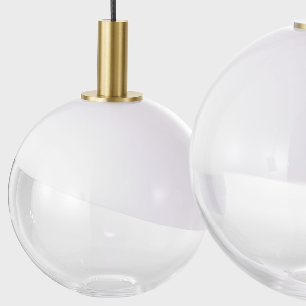 The Torian collection by Sean Lavin draws inspiration from sculptural hanging mobiles. Multiple arms with fabric cords suspend beautiful glass globe shades with an ombre effect, transitioning from milk to etched clear glass. Ideal for entryways and dining rooms, the Torian chandelier will lend a sophisticated artistic touch to interior spaces.