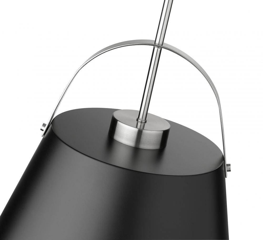 Classic industrial style adds a casual influence to this transitional single-light pendant, a superb choice for a kitchen or entertaining space. With a tapered matte black finish metal shade and brushed nickel finish steel frame, it offers up a relaxing aesthetic with plenty of personality.