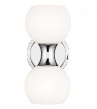 An iconic Mid-Century Modern vibe and a crisp contrasting finish palette deliver unforgettable character directing a new approach to lighting as d?cor. This two-light wall sconce from the Artemis collection makes good use of circular silhouetting, placing charming matte opal glass globe shades in a stacked fashion, as a matte black finish steel frame delivers a bold look and a festive aesthetic ideal for a bath space or main living area.